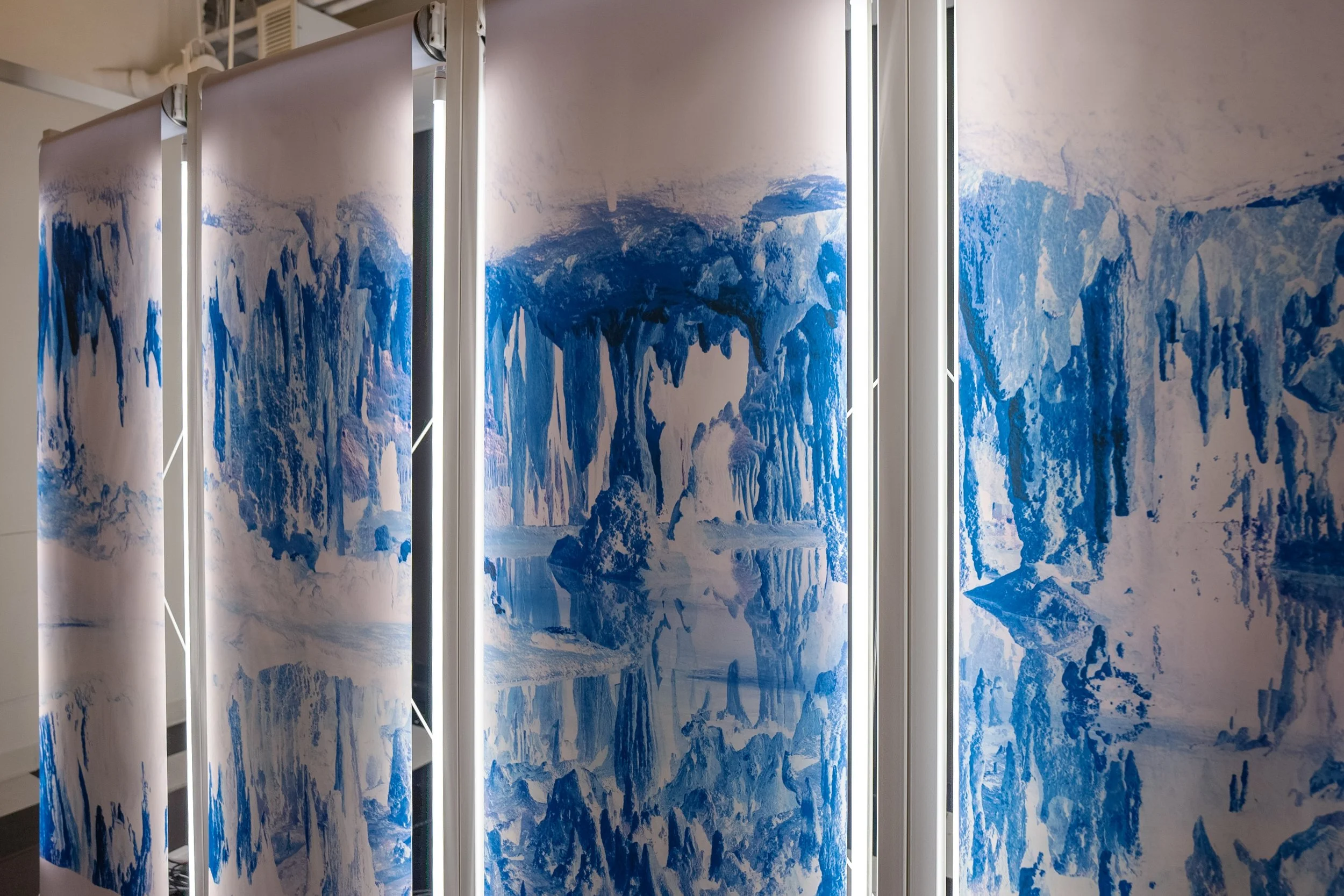 In my scroll series, I portray the rugged contours of rocks, the sinuous flow of rivers, and the mysterious depths of caves, using them as a metaphorical canvas to explore the depths of care in our interactions with the natural world. Within the rugged terrain, I subtly invite contemplation of the delicate balance of ecosystems and the unseen connections binding every facet of existence. Through the interplay of light and shadow, I capture not only the physical features of these landscapes but also hint at invisible threads of interdependence. The works transition from their natural colors and hues to something more abrupt, prompting reflection on the fragility and resilience of the natural world, mirroring the abrupt changes and disruptions caused by human actions. In addition to the imagery itself, the format of the scrolls contributes to the thematic exploration of care and interconnectedness. As the scrolls unfurl and reveal their intricate scenes, there's a sense of movement and progression, mirroring the ever-changing and dynamic nature of life. Beneath the surface lies a profound message—a call to embrace a lighter touch in our relationship with the natural world.